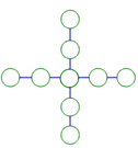 2、在下图中填入2——10,使横行、竖行中的五个数的和相同。和是多少呢?