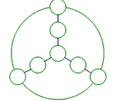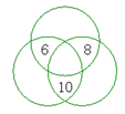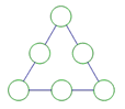 6、将数字1——6填入下图中的小圆圈内,使每个大圆上4个数的和都是15。