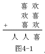 1、在图4-1所示的算式中,每一个汉字代表一个数字,不同的汉字代表不同的数字.那么“喜欢”这两个汉字所代表的两位数是多少?