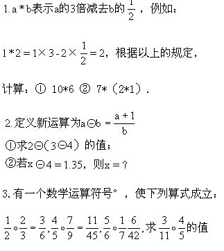 正确解答定义新运算这类问题的关键是要确切理解新运算的意义,严格按照规定的法则进行运算。如果没有给出用字母表示的规则,则应通过给出的具体的数字表达式,先求出表示定义规则的一般表达式,方可进行运算。