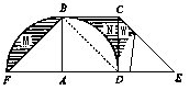 8、如下页右上图,ABC是等腰直角三角形,D是半圆周上的中点,BC是半圆的直径,且AB=BC=10,求阴影部分面积(π取3.14)。